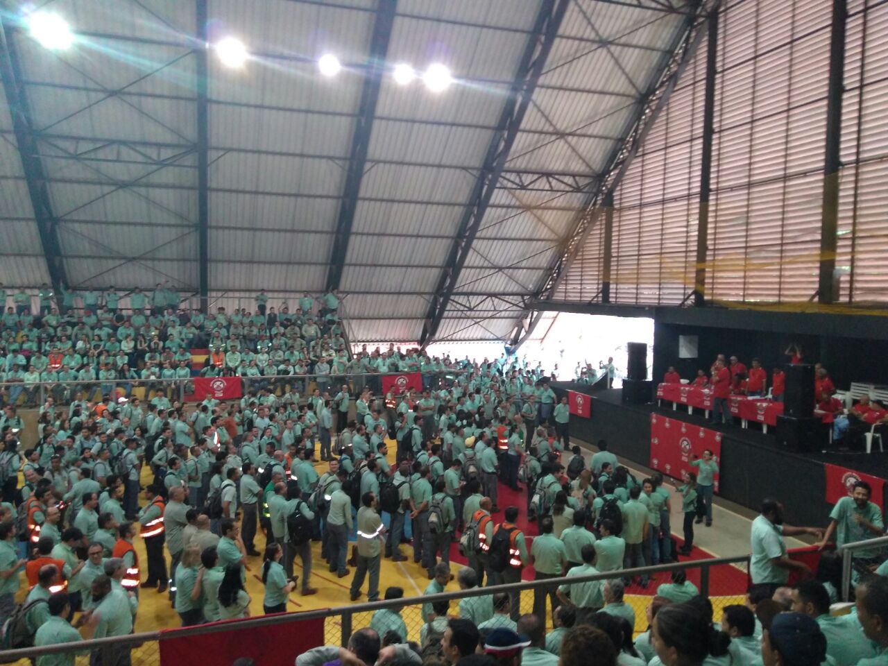 Com quase uma hora de reunião, que eram esperados cerca de quatro mil funcionários para a primeira votação, o Metabase leu a minuta da proposta apresentada na última terça-feira aos sindicatos em Belo Horizonte e a maioria dos funcionários aprovou a proposta da empresa.