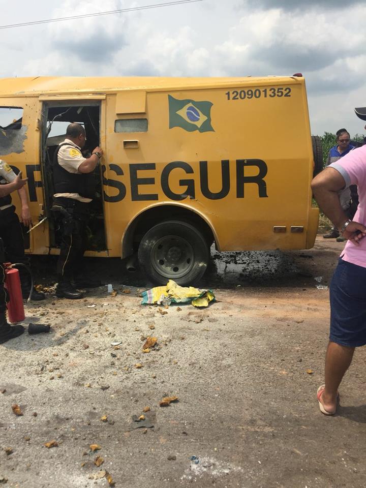 Durante a ação, houve uma intensa troca de tiros entre os vigilantes que faziam o transporte e os bandidos e uma pessoa ficou ferida.