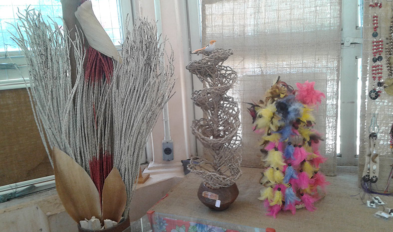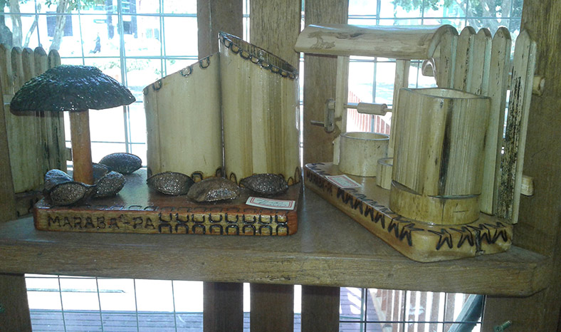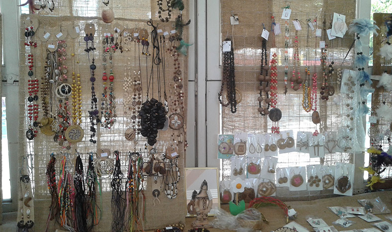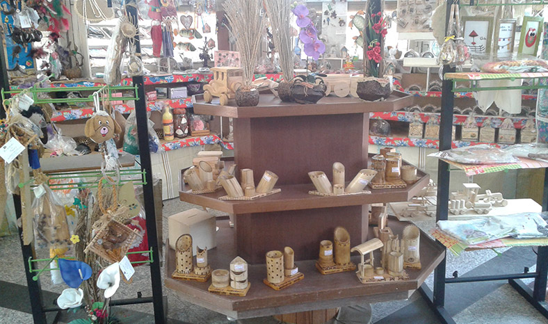 Muito do artesanato ali encontrado é resultado do reaproveitamento de materiais naturais, como cascas de árvores, sementes, folhas de palmeiras e caroços de frutas, entre outros. Há também objetos confeccionados com produtos reciclados, cujo destino seria o lixo, como restos de madeira e tecido. É permitida a exposição de pintura em tecidos, quadros, pintura e pirogravura em madeira, mas desde que tenha algum elemento regional.