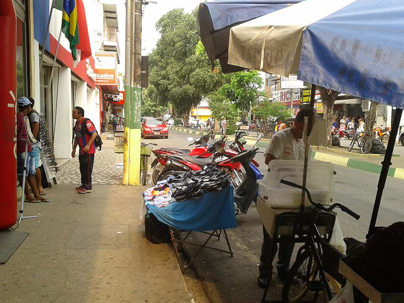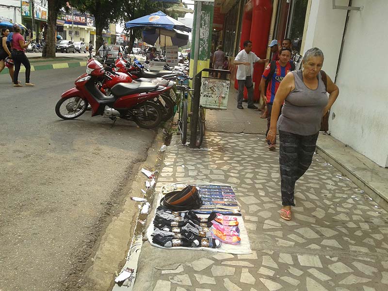 Josenilson vende água mineral, Manoel vende roupas, Vitória vende eletroeletrônicos do Paraguai, Elivaldo vende churrasquinho no espeto, o popular espetinho, Olavo vende CDs e DVDs de filmes e músicas, Normando vende óculos de sol, Elivaldo vende bichos e bonecos de pelúcia. E tudo isso nas calçadas dos três núcleos urbanos de Marabá, que praticamente viraram um shopping horizontal e informal. O que todos eles têm em comum? Um dia foram empregados, com carteira assinada, direitos garantidos e tudo mais. Porém, a crise econômica, que provocou o fechamento de empresas e a redução de quadro em outras, os empurrou para as ruas.