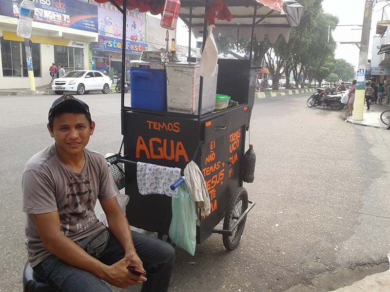 Elivaldo dos Santos, 30 anos, vende espetinhos em um carrinho. Por causa da dificuldade em conseguir emprego e, segundo ele, pelos baixos salários oferecidos pelo mercado, optou por trabalhar por conta própria. Deu certo. “Financeiramente, o meu trabalho está dando mais resultado do que quando eu era empregado. Já consegui adquirir muita coisa com o dinheiro que ganho aqui”, comemora.