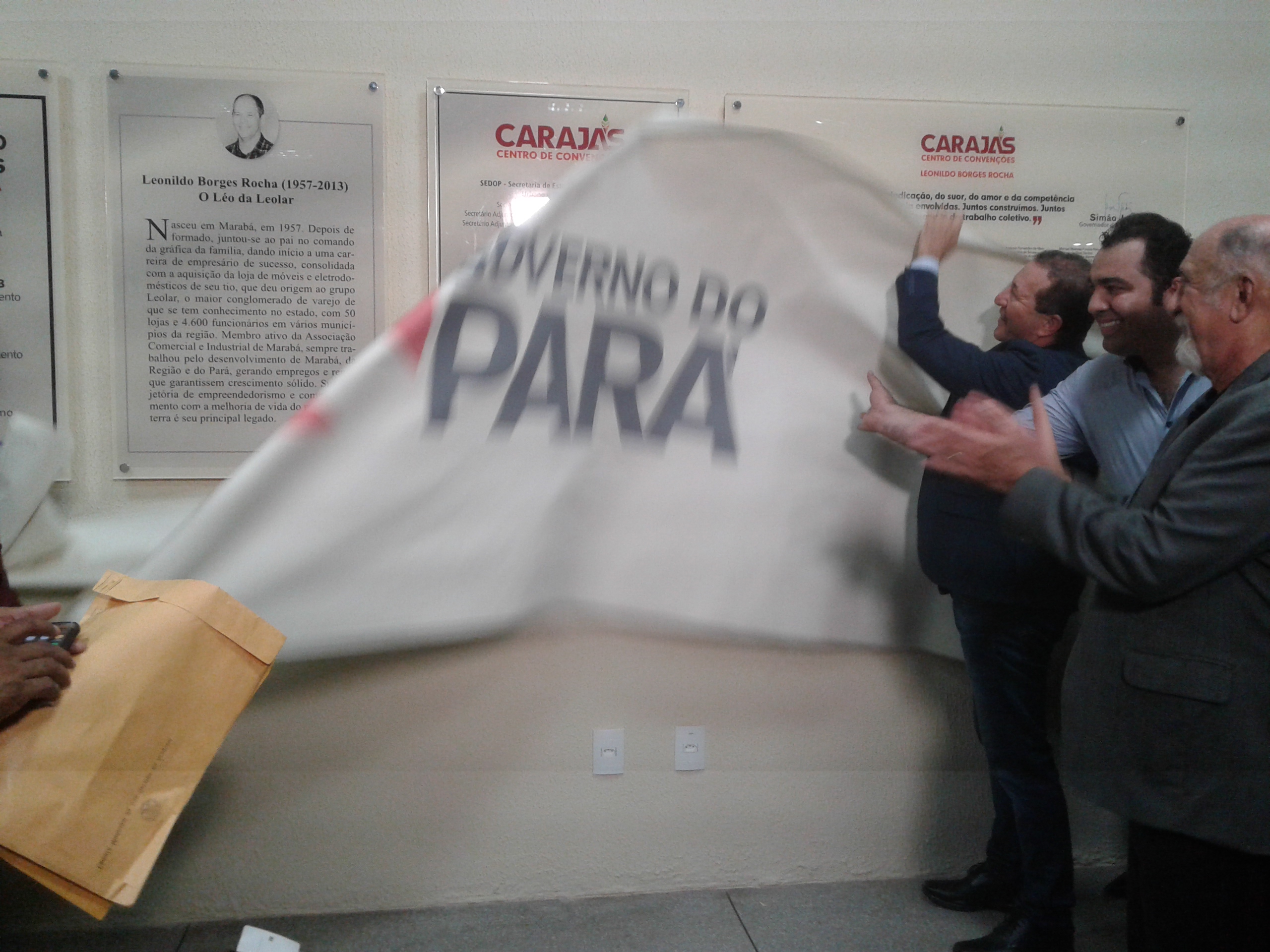 Com a presença de grande comitiva política, além de prefeitos, vereadores, empresários e outros convidados das regiões sul e sudeste do Estado, o governador Simão Jatene (PSDB) inaugurou na noite de ontem, sexta-feira (15), o Carajás Centro de Convenções “Leonildo Rocha”, em Marabá. É o segundo maior espaço de eventos do Pará, orçado em R$ 31 milhões e com 13.500 metros quadrados. Presentes à solenidade, Shirley Rocha e Andressa Rocha, respectivamente viúva e filha do empresário