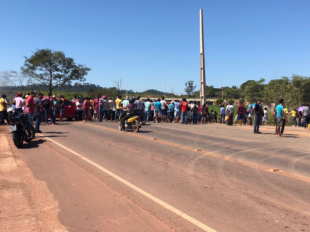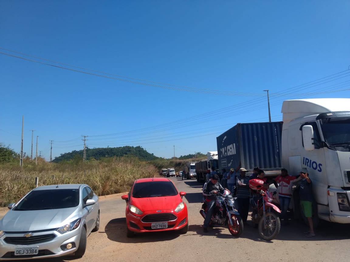 A Polícia Militar foi acionada e está no local para negociar com os manifestantes.