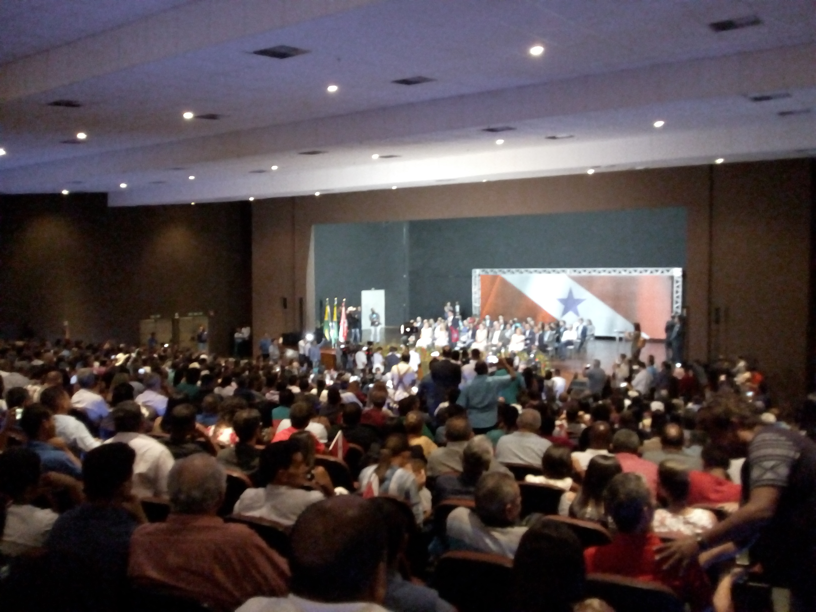 No palco do teatro Helder Barbalho foi saudado pelo prefeito de Marabá, Sebastião Miranda Filho (PTB) – Tião Miranda, que agradeceu a presença do governador na cidade logo no primeiro dia de mandato, disse que a missão que ele começou a desempenhar não é fácil, mas acredita na capacidade do governador, na vontade que ele tem de trabalhar, na sua juventude e na equipe que escolheu.