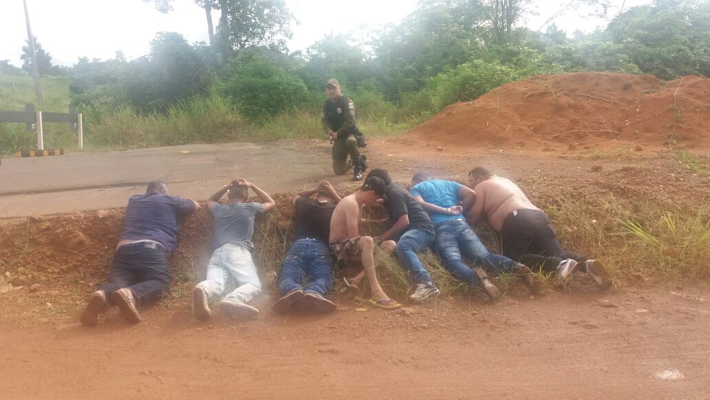 Foram pegos em flagrante pela Polícia Militar, por volta das 8h desta quarta-feira (7), e estão presos da Delegacia de Polícia de Itupiranga os indivíduos Ismauro Dias Almeida, 19 anos; Adriano Araújo Lisboa, 37; Moisés Almeida de Araújo, 31; Eduardo Damião de Lima, 27, que se identificava como Mailson Ramos da Silva, 24; Fabrício Reis Lopes, 39; Janilson Alves Simões, 32; e Arielson da Silva Souza, 46. Todos são acusados de terem assaltado um caminhão baús dos Correios, no Km 100 da Rodovia BR-230 – Transamazônica -, em Itupiranga.