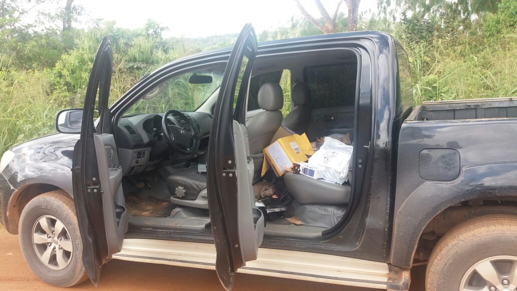 O bando foi interceptado num trecho próximo a Cajazeiras, em uma camionete Hilux preta, de placas NSN-3006, com cinco indivíduos, a qual também transportava mercadorias roubadas, onde foi encontrada uma pistola calibre 380.
