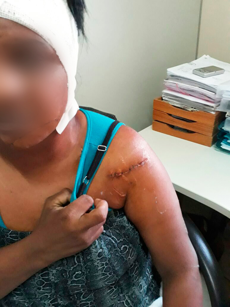 Elinalva informou na Depol que Jaílson só parou de cortá-la com o facão quando ouviu um barulho de motos chegando na porta da casa. Com medo de que poderia ser a polícia, Jaílson correu para o fundo da casa e se escondeu. Nesse momento, Elinalva saiu para a porta da casa pedindo socorro. Os motoqueiros prestaram socorro à ela trazendo-a para o Hospital Geral de Parauapebas. Elinalva teve alta hoje e imediatamente compareceu à DEAM para denunciar a agressão.