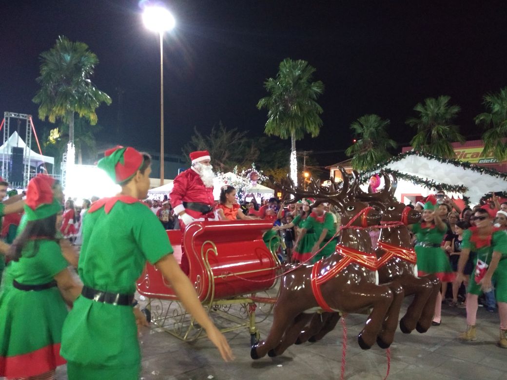 O Bom Velhinho chegou à praça em seu trenó encantado, recebeu aplausos dos espectadores e, após cumprimentar os convidados, foi levado pela Mamãe Noel para a casinha em que ambos vão morar durante uma semana, recebendo crianças para fotografias.