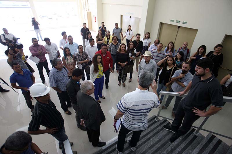 O governo do Estado, por meio da Secretaria de Estado de Turismo e da Secretária de Estado de Municípios Sustentáveis, inaugura amanhã, sexta-feira (15), o Carajás Centro de Convenções “Leonildo Rocha”. Localizado na Rodovia BR-222, o empreendimento possui 13 mil metros quadrados de área construída em um terreno de mais de 33 mil metros quadrados, abrigando quatro grandes blocos modulados. Antecedendo a inauguração, a Imprensa local e convidados visitaram na manhã desta quinta-feira (14) o empreendimento, percorrendo todos os ambientes. A seguir, o secretário de Estado de Turismo, Adenauer Góes, e a secretária de Estado de Municípios Sustentáveis, Izabela Jatene, concederam coletiva aos meios de Comunicação locais.