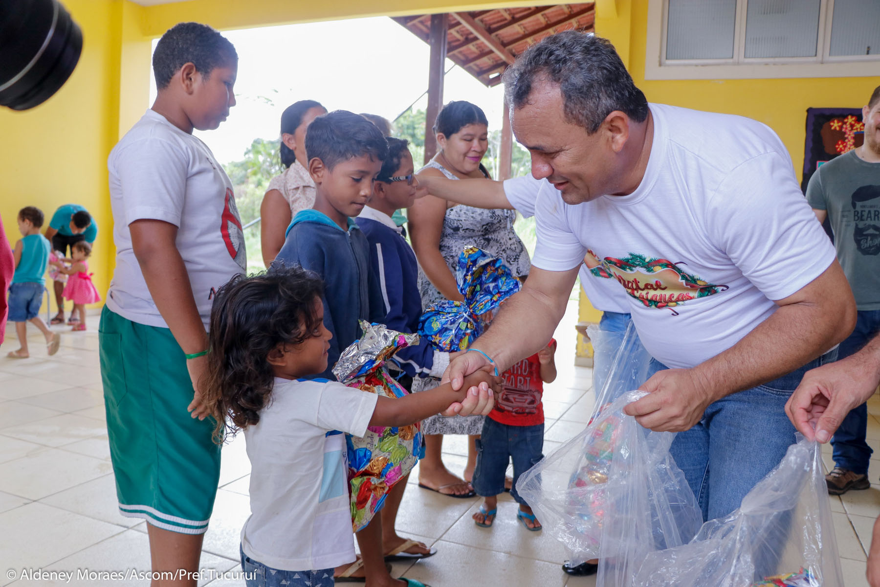 As crianças das comunidades do lago de Tucuruí receberam a comitiva da Prefeitura de Tucuruí e puderam participar da ação Natal das Crianças. O Prefeito Bena Navegantes e a secretária de Assistência Social, Alessandra Francês, reuniram com os pais e crianças nas escolas Ouro Verde, Manoel Mendes e Santo Antônio/Ararão para entregar os tão aguardados presentes de Natal.
