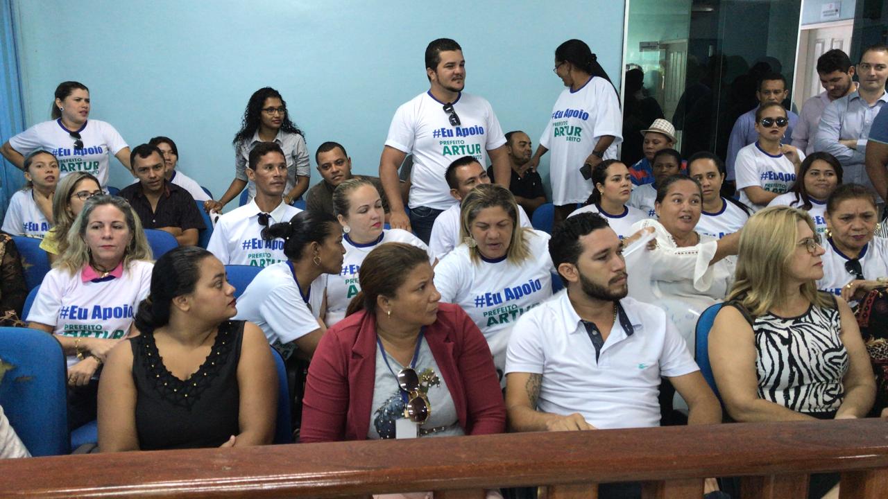 A sessão extraordinária foi marcada pela concentração de grupos a favor e contra Artur Brito, que está afastado por 90 dias pela Câmara de Vereadores desde o dia 1° de dezembro de 2017.
